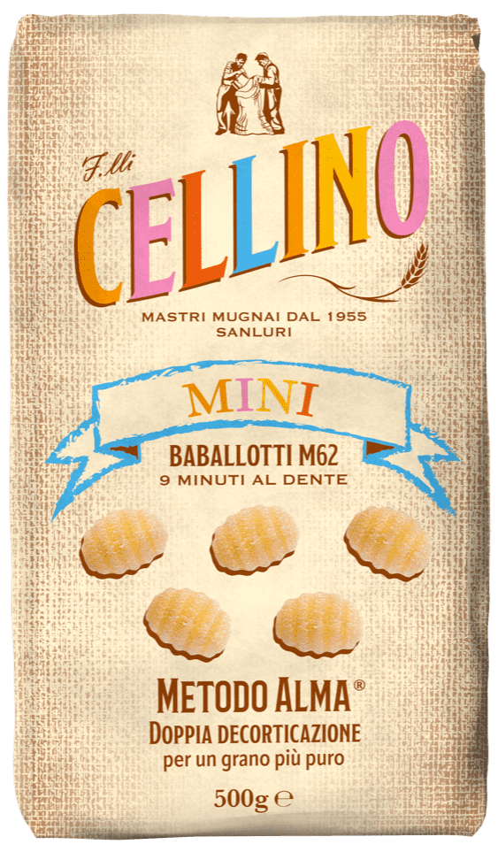 The Baballotti M62 owe their name to a Sardinian term used playfully to indicate small animals or insects. Their “shell-like” shape and the curled, wrinkled surface are reminiscent of a Malloreddu in miniature. It goes perfectly with a great many condiments, from a simple tomato sauce to more elaborate sauces made with meat or vegetables.