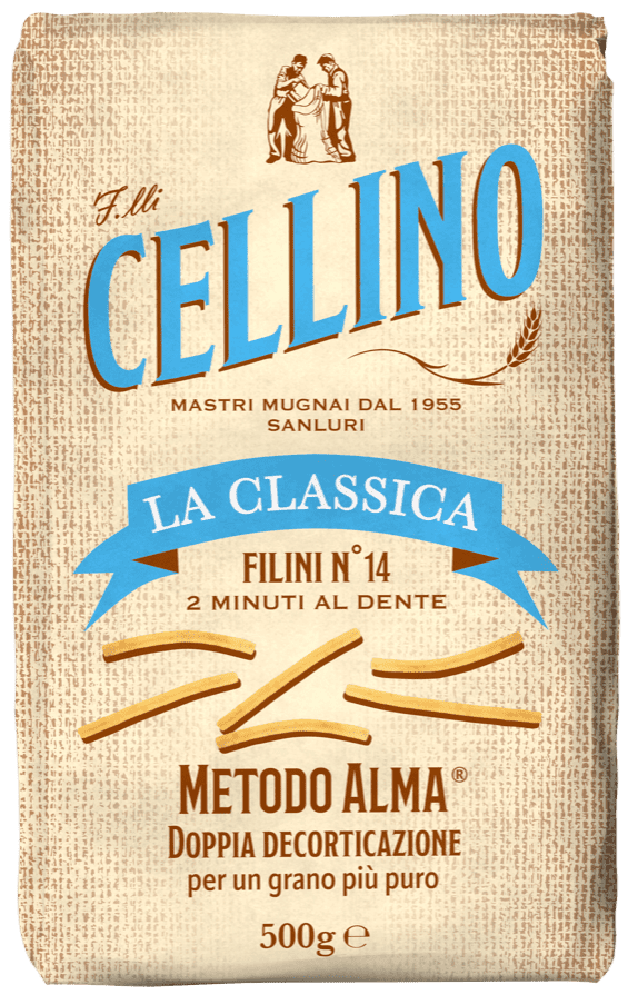 اسم “فيليـني” مشتق بالضبط من شكلها: فهي تشبه شفرات العشب. تم إنشاء فيليـني رقم 14 ليطبخ في دقيقتين فقط، مع الحفاظ على قوامها الأل دينتي. تحظى دائمًا بشعبية في تحضير الحساء، وذلك بفضل قدرتها على الطهي السريع والمساعدة في إنشاء أطباق غنية بالمغذيات في وقت قصير