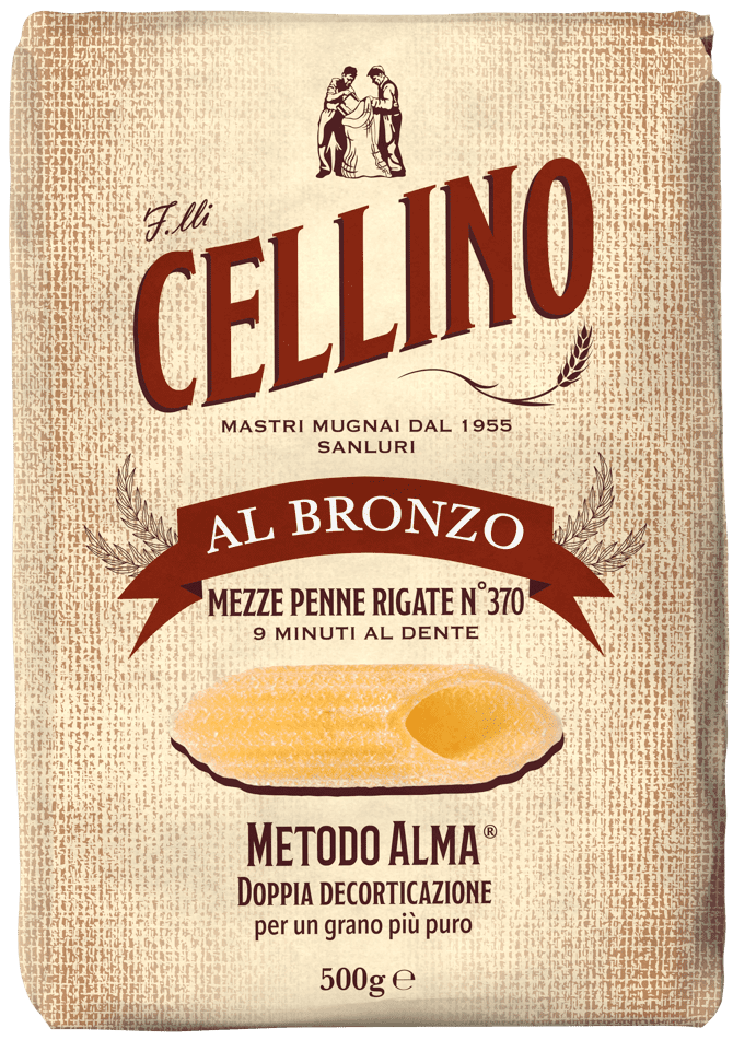 The bronze-drawn Mezze Penne Rigate no. 370, with their elegant tubular shape and slanting cut, are characterised by a furrowed surface. They are perfect for fresh tomato sauces, meat ragù, creamy sauces such as carbonara, or vegetable-based sauces. But that’s far from all! About 9 minutes in the pot of salted water and they are ready, al dente, in a perfect consistency.