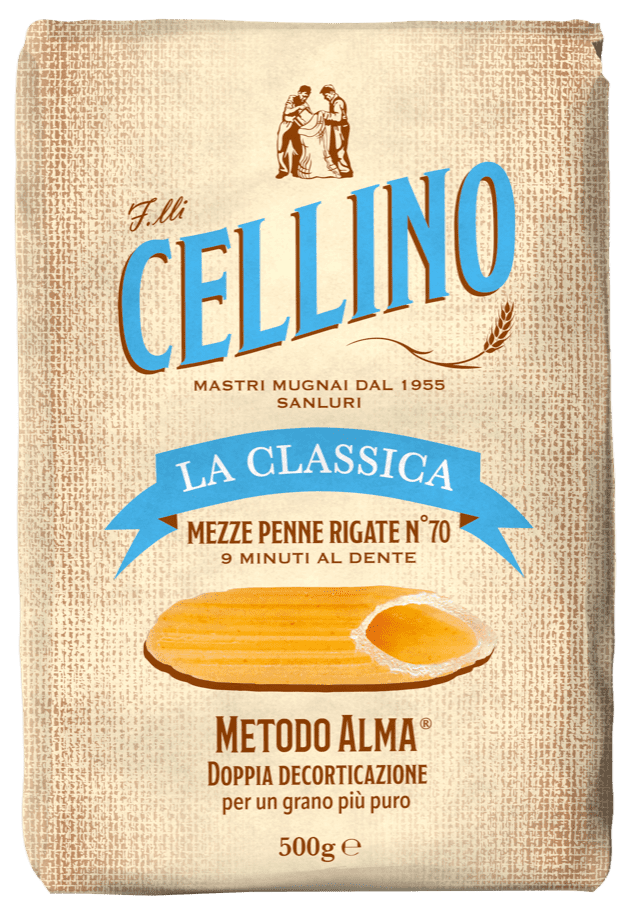 Mezze Penne Rigate no. 70, similar to classic penne, but in a shorter and more compact version, are a blank canvas for creativity in the kitchen. In fact, this format perfectly matches with a wide range of sauces, from the classic tomato and basil to cream of mushroom or meat sauce, and can also be used in cold salads.