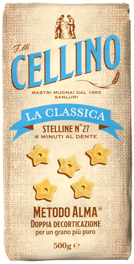 The baking time for Stelline no. 27 is short but essential: just 6 minutes are enough to bring joy to the palates of the young and old. They can be enriched with simple fresh tomato and basil, or with a vegetable cream. But there is nothing better for this format than a hot broth, ready to turn dinner in a magical starry sky.